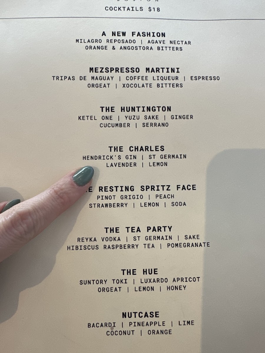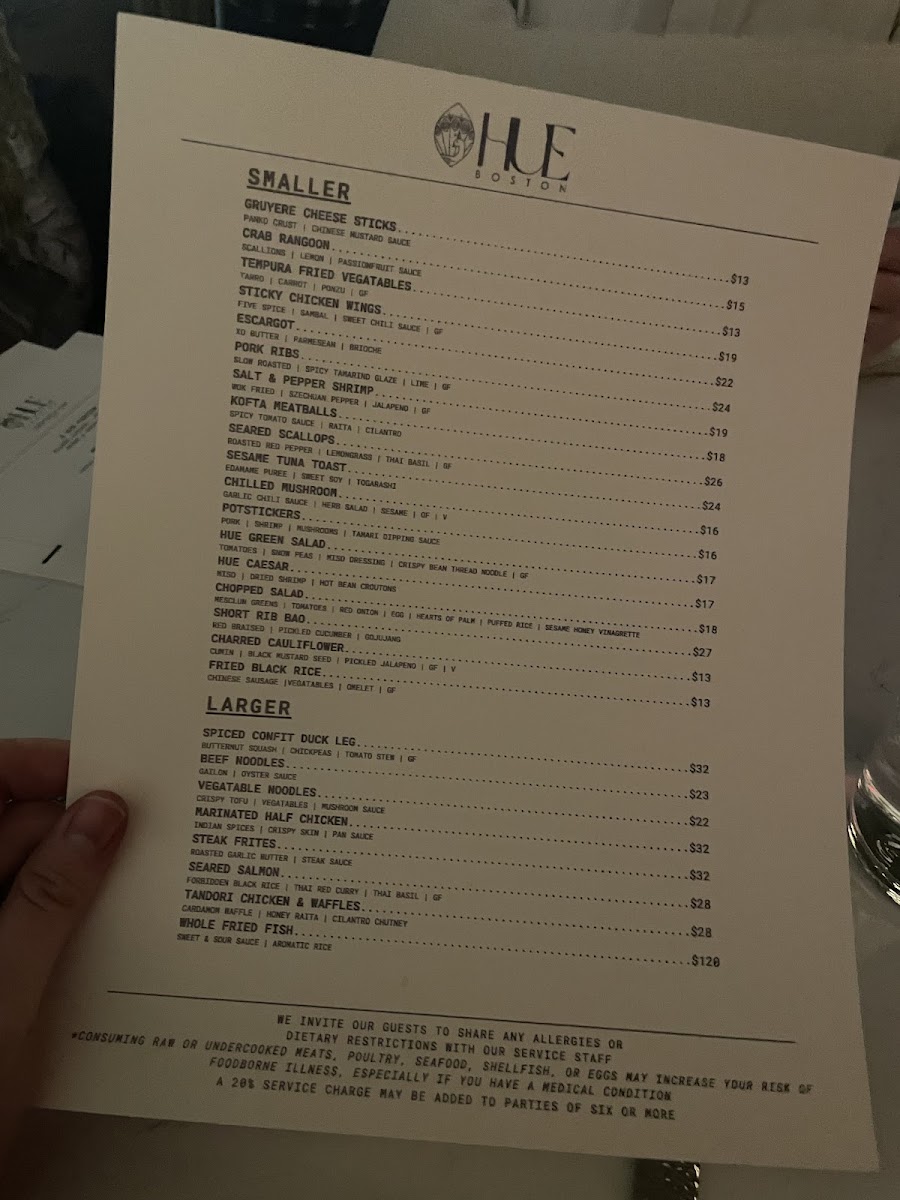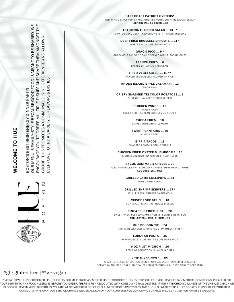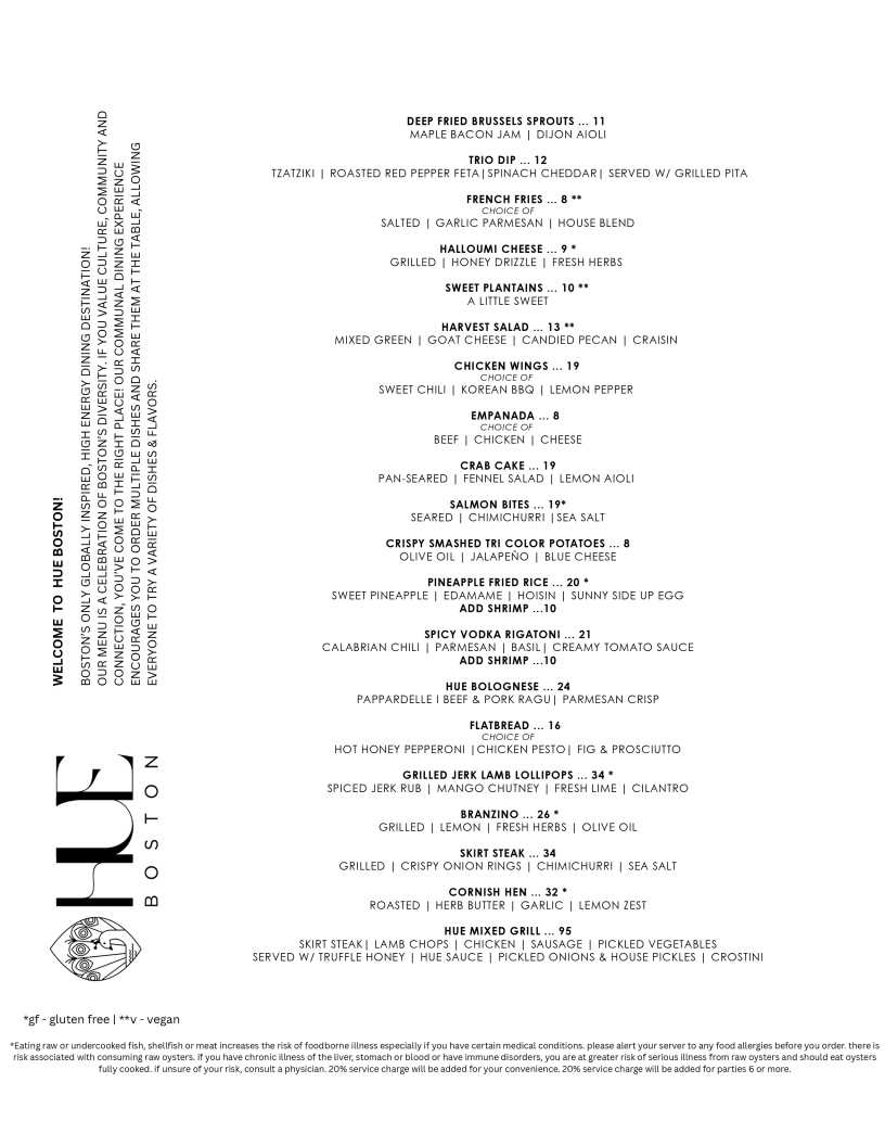 Hue Boston Menu